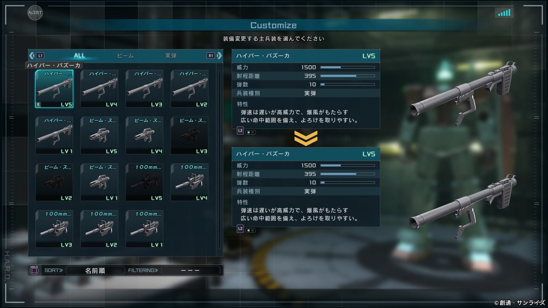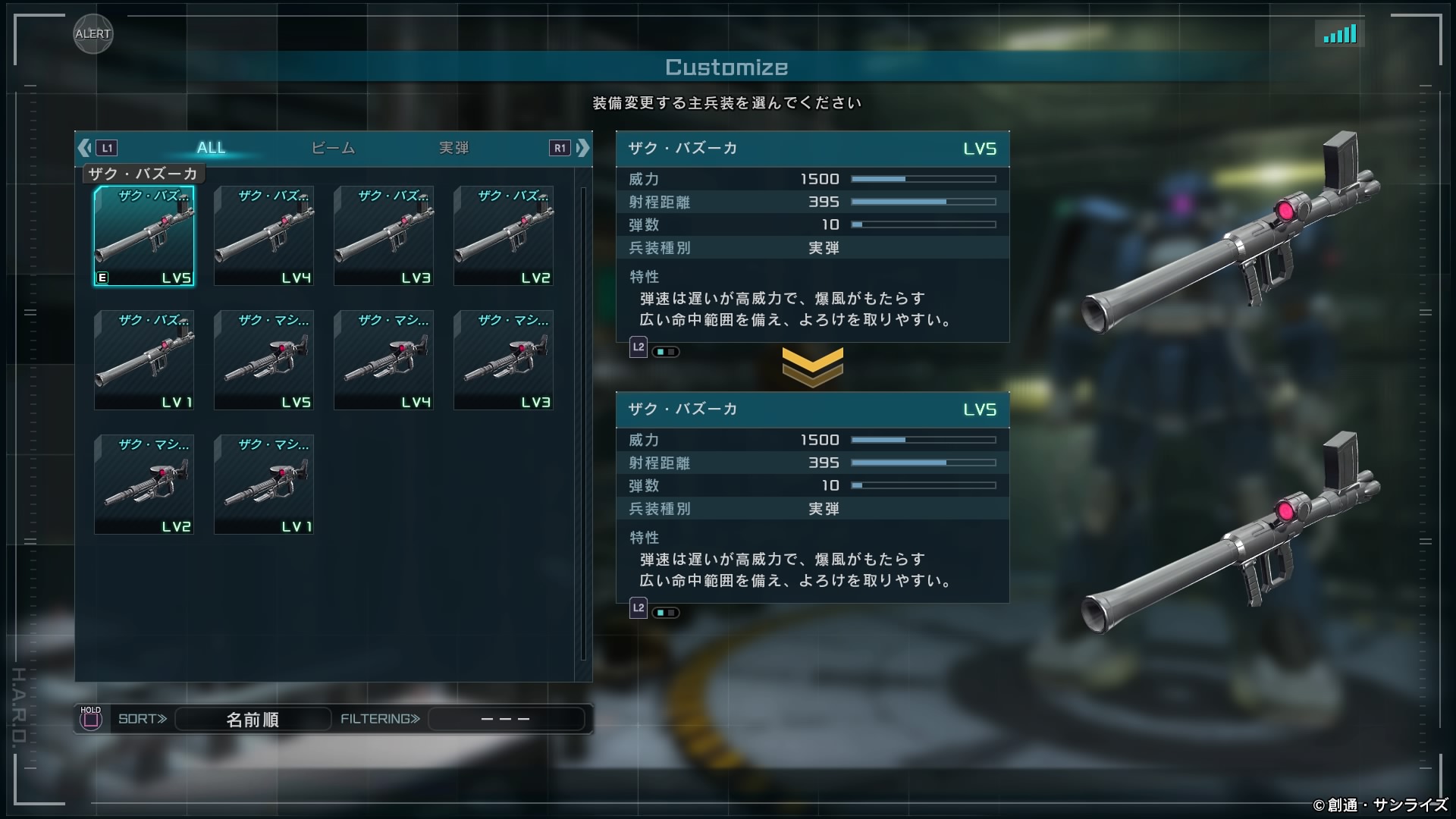 戦闘に際してまず入手して欲しいのがバズーカ系のよろけを発生させる武器です。特にザク・バズーカやハイパー・バズーカは装備できるMSが多い武器で汎用性があります。